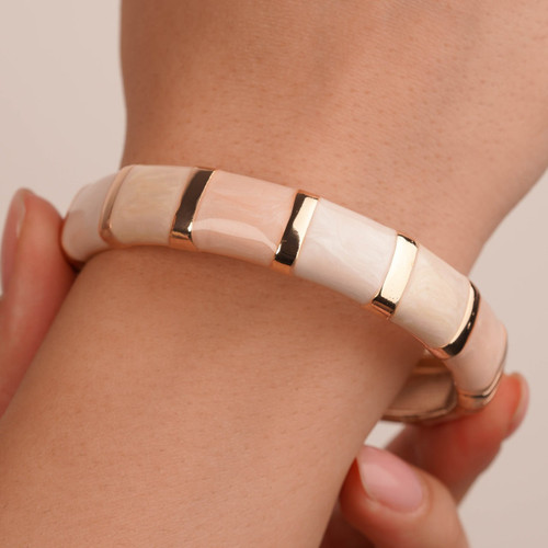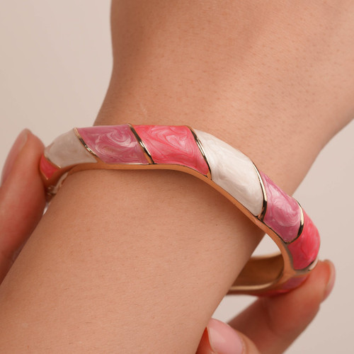 دستبند النگویی میناکاری رنگ صورتی پر رنگ مناسب برای سایز 2