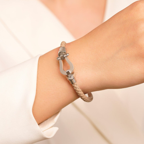 دستبند چرم استیل FRED سگک سفید رنگ نسکافه ای طول دستبند: ۲۱ سانت