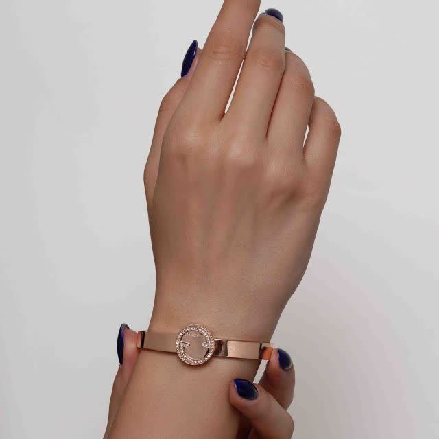 دستبند النگویی نگین دارطرح کارتیه ، نگین ها مخراج کاری شده ، فوق العاده شیک مناسب سایز ۲