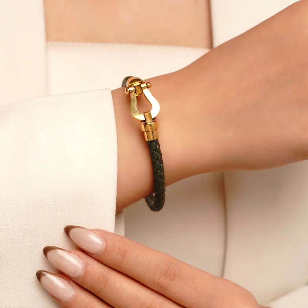 دستبند بافت استیل FRED سگک طلایی رنگ مشکی طول دستبند: ۲۱ سانت