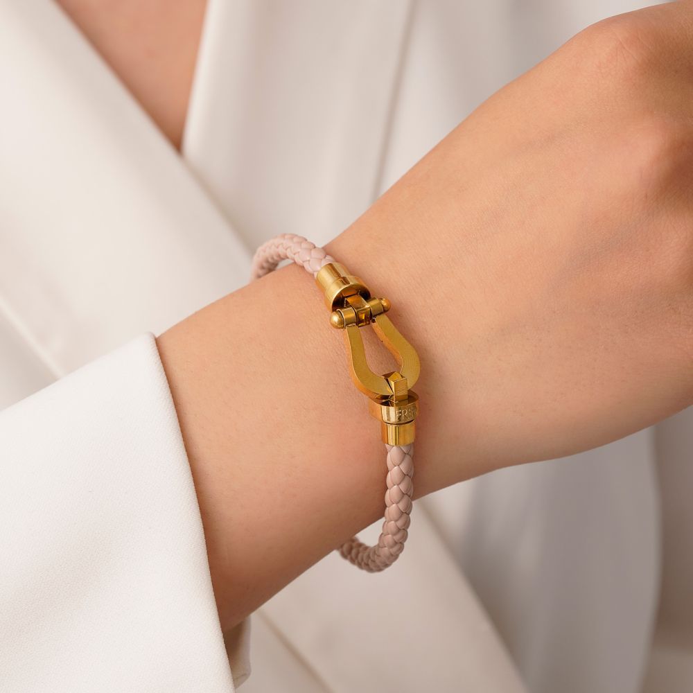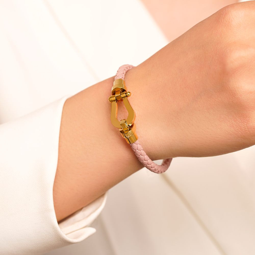 دستبند چرم استیل FRED سگک سفید رنگ صورتی طول دستبند: ۲۱ سانت