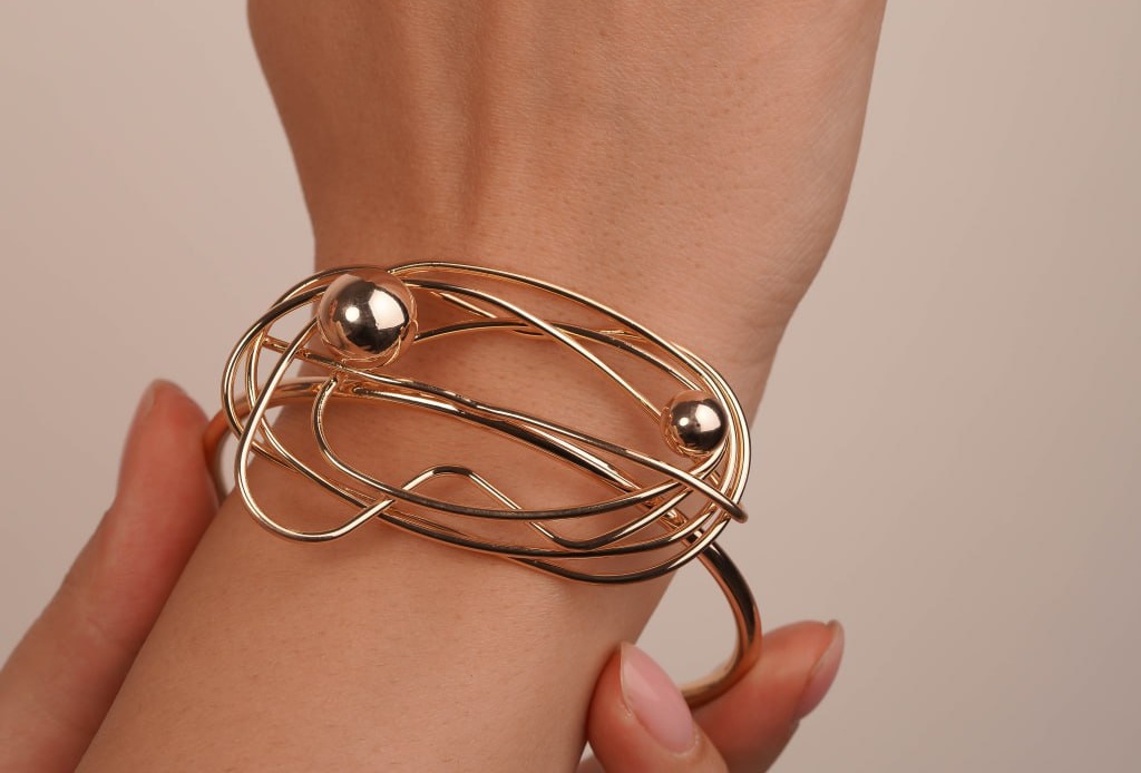 دستبند النگویی نگین دار مشابه طلا برند ژوپینگ