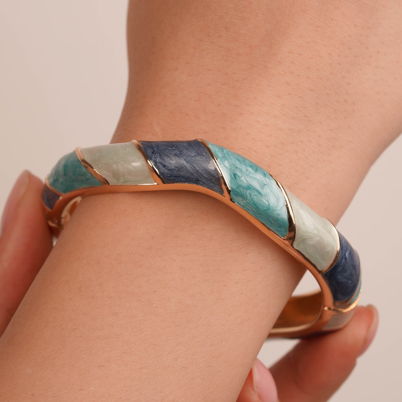 دستبند النگویی استیل طلایی مناسب برای سایز ۲ با میناکاری آبی