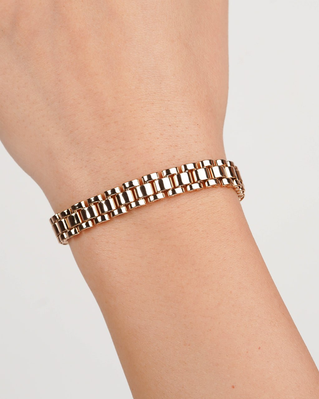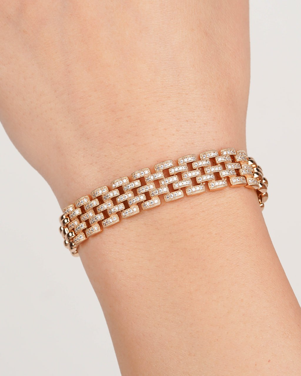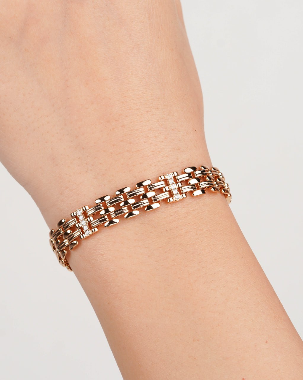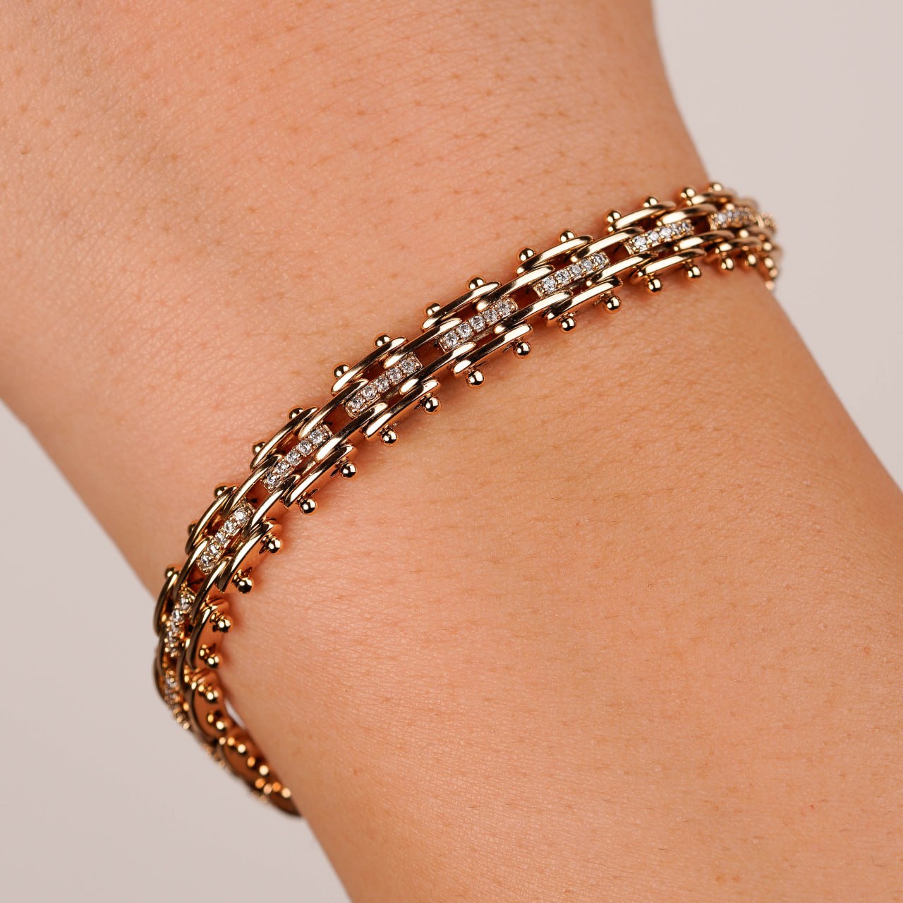 دستبند زنجیری ژوپینگ طرح مسیکا فول نگین مخراج کاری شده رنگ طلایی در اندازه 17/5 تا 19/5 در 10میل