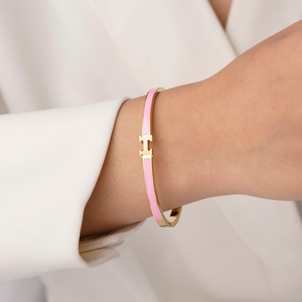 دستبند النگویی میناکاری رنگ صورتی مناسب برای سایز 2