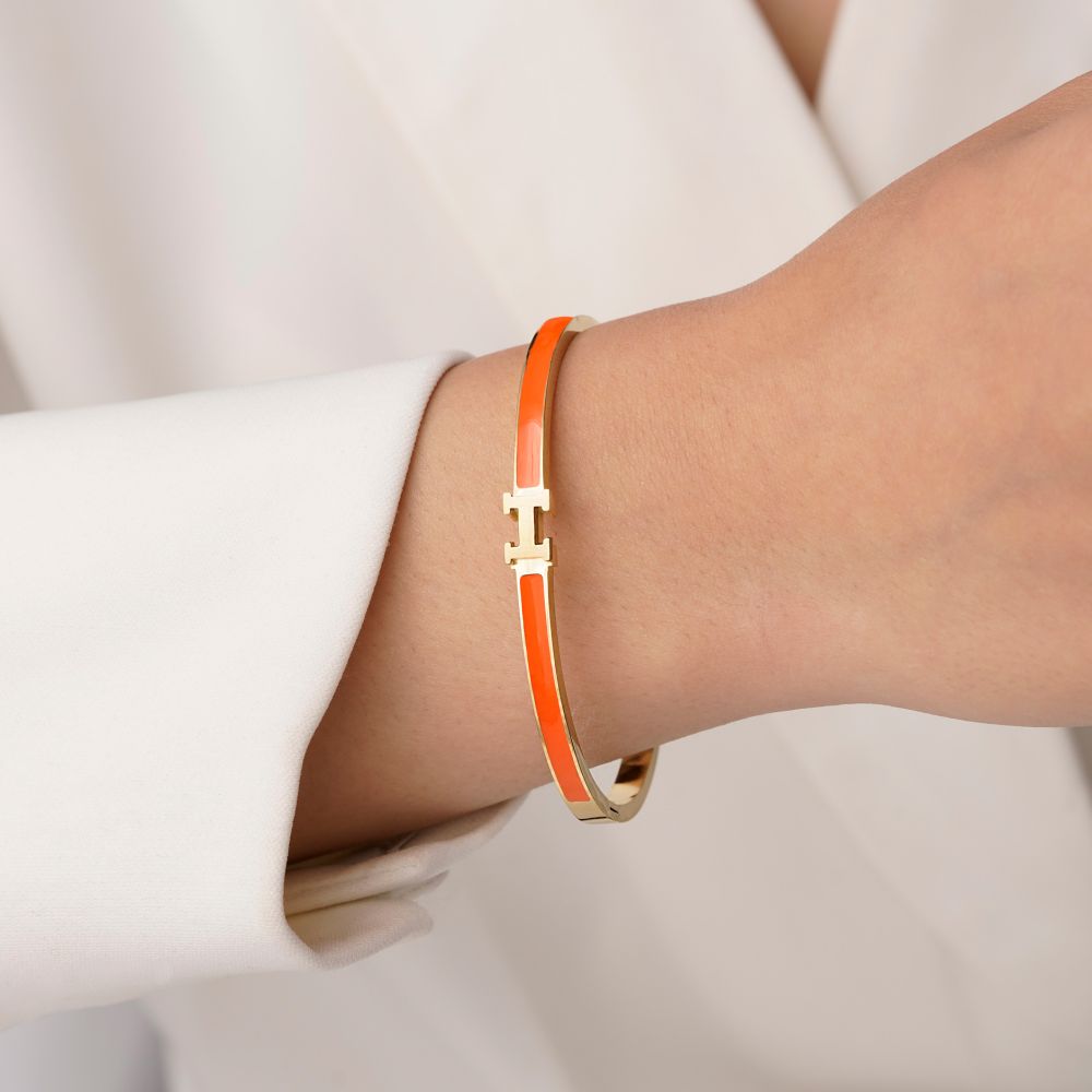 ناموجوددستبند النگویی استیل هرمس ۴ میل و قطر ۶۰ میل رنگ نارنجی