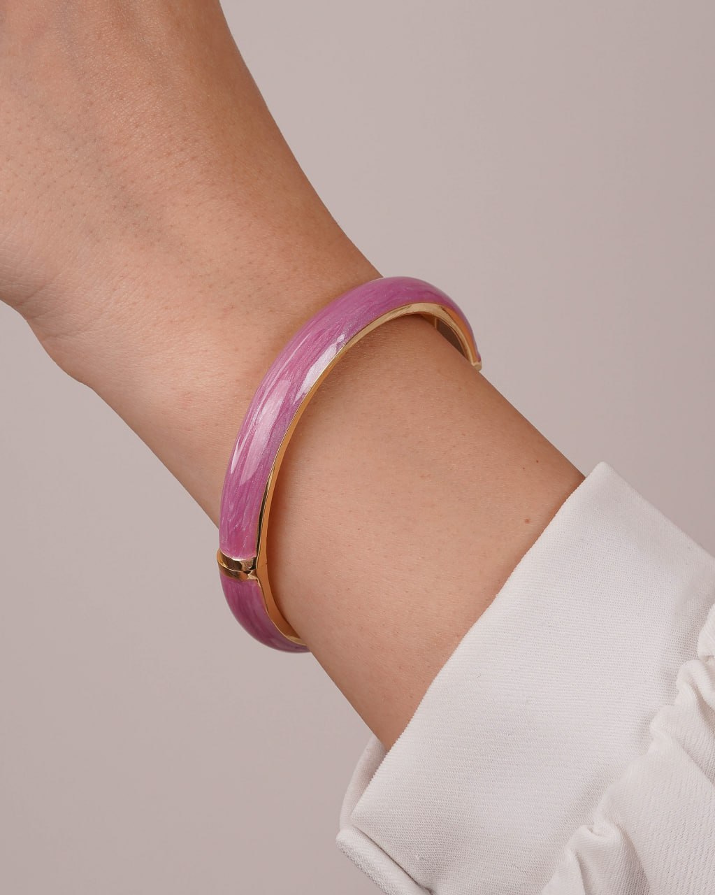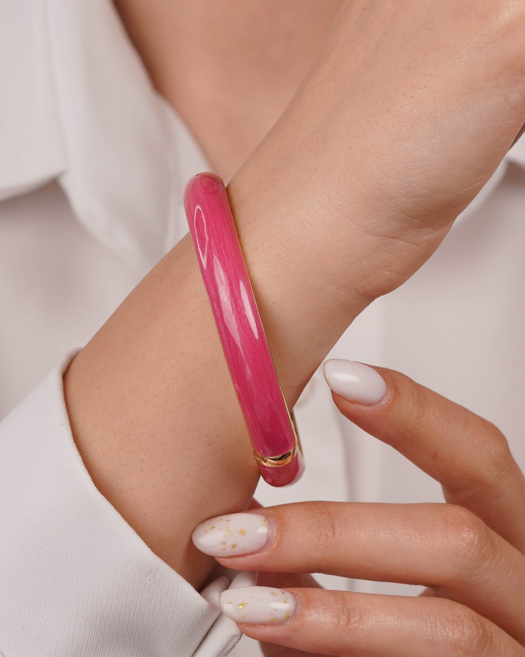 دستبند النگویی میناکاری رنگ صورتی پر رنگ مناسب برای سایز 2