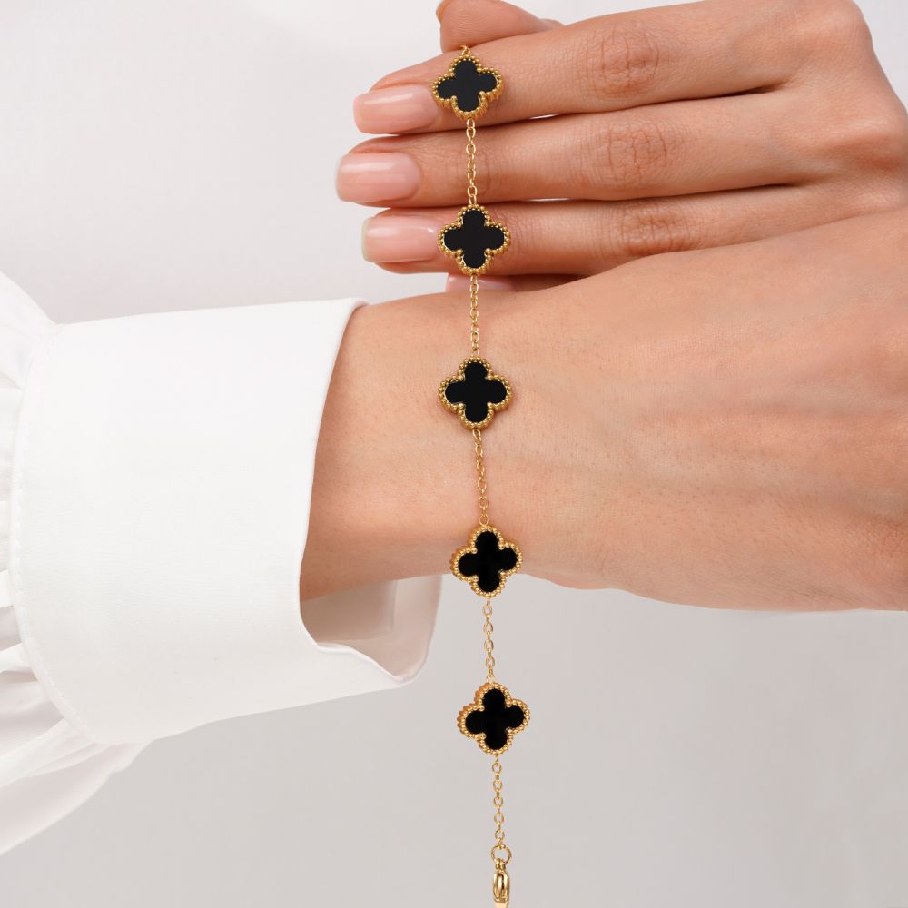 دستبند استیل ونکلیف مشکی طلایی ۱۳ میل