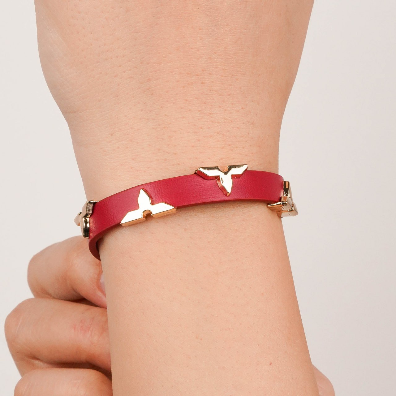 دستبند چرم استیل Louis vuitton رنگ قرمز
