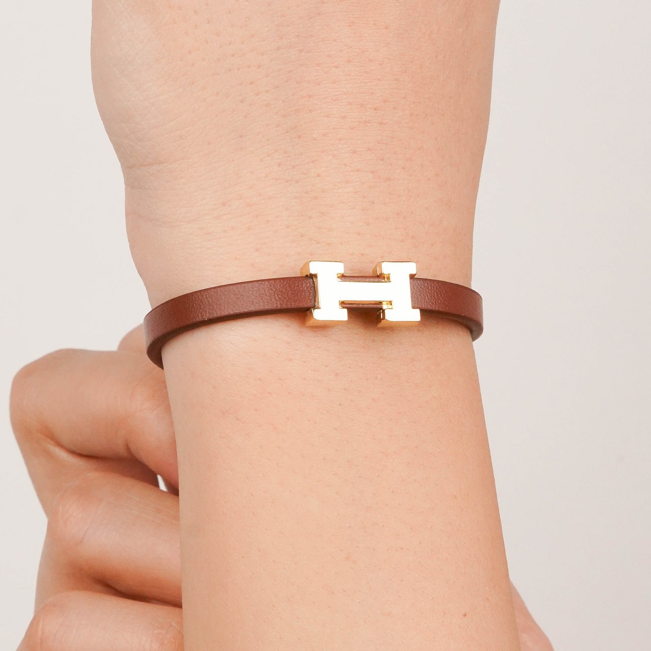 دستبند چرم استیل Hermes رنگ قهوه ای