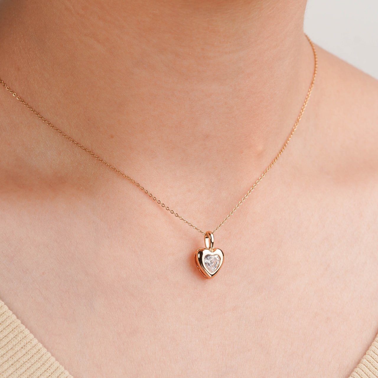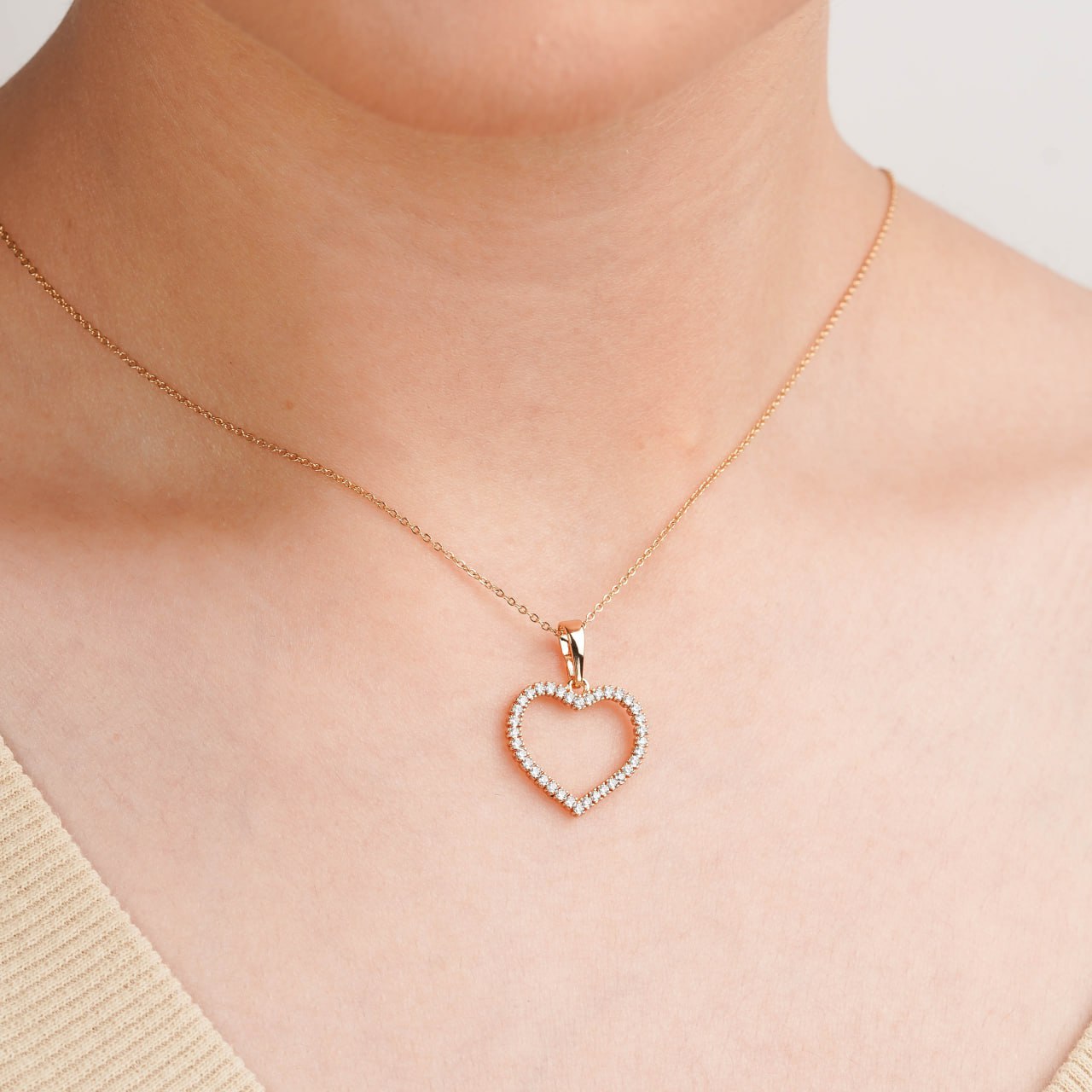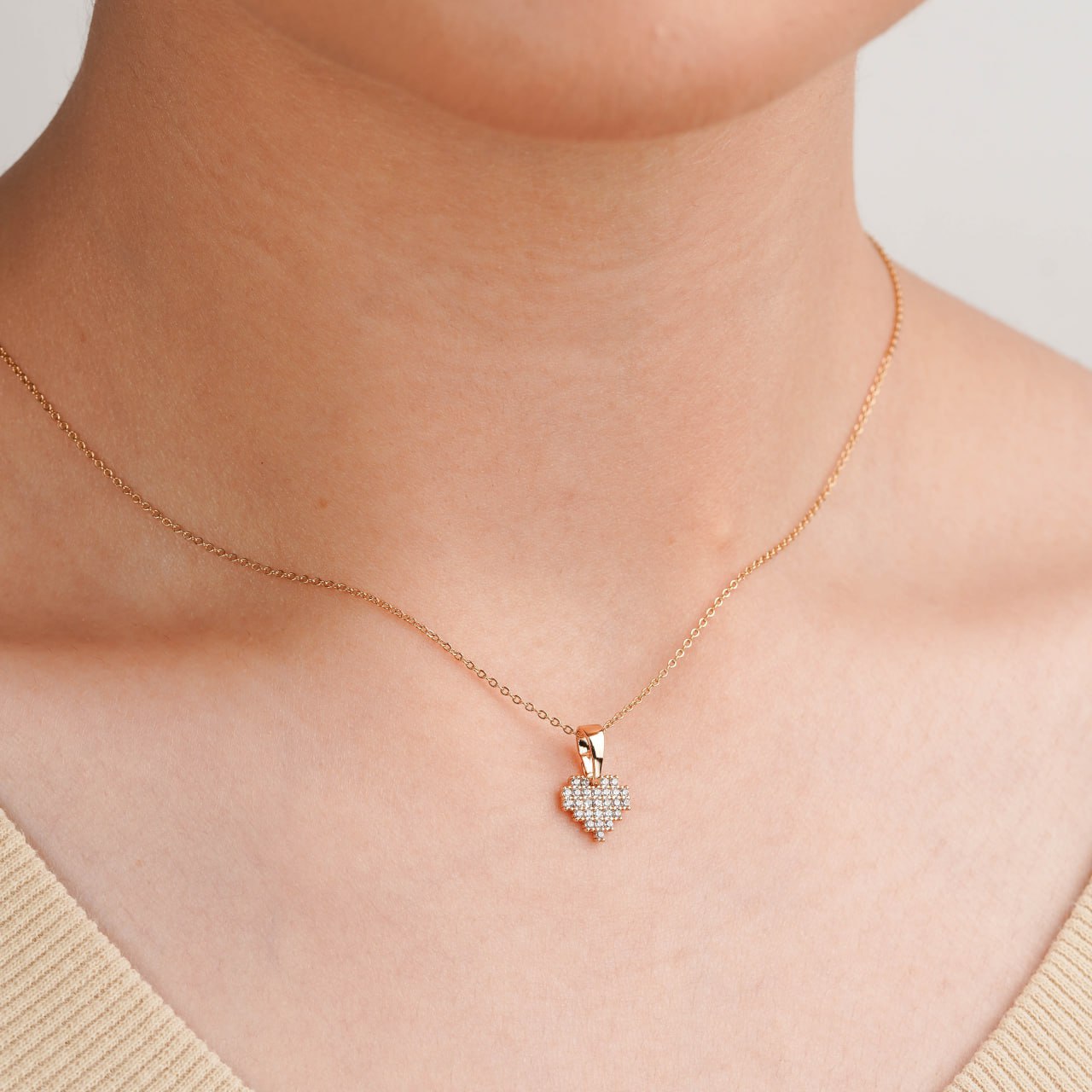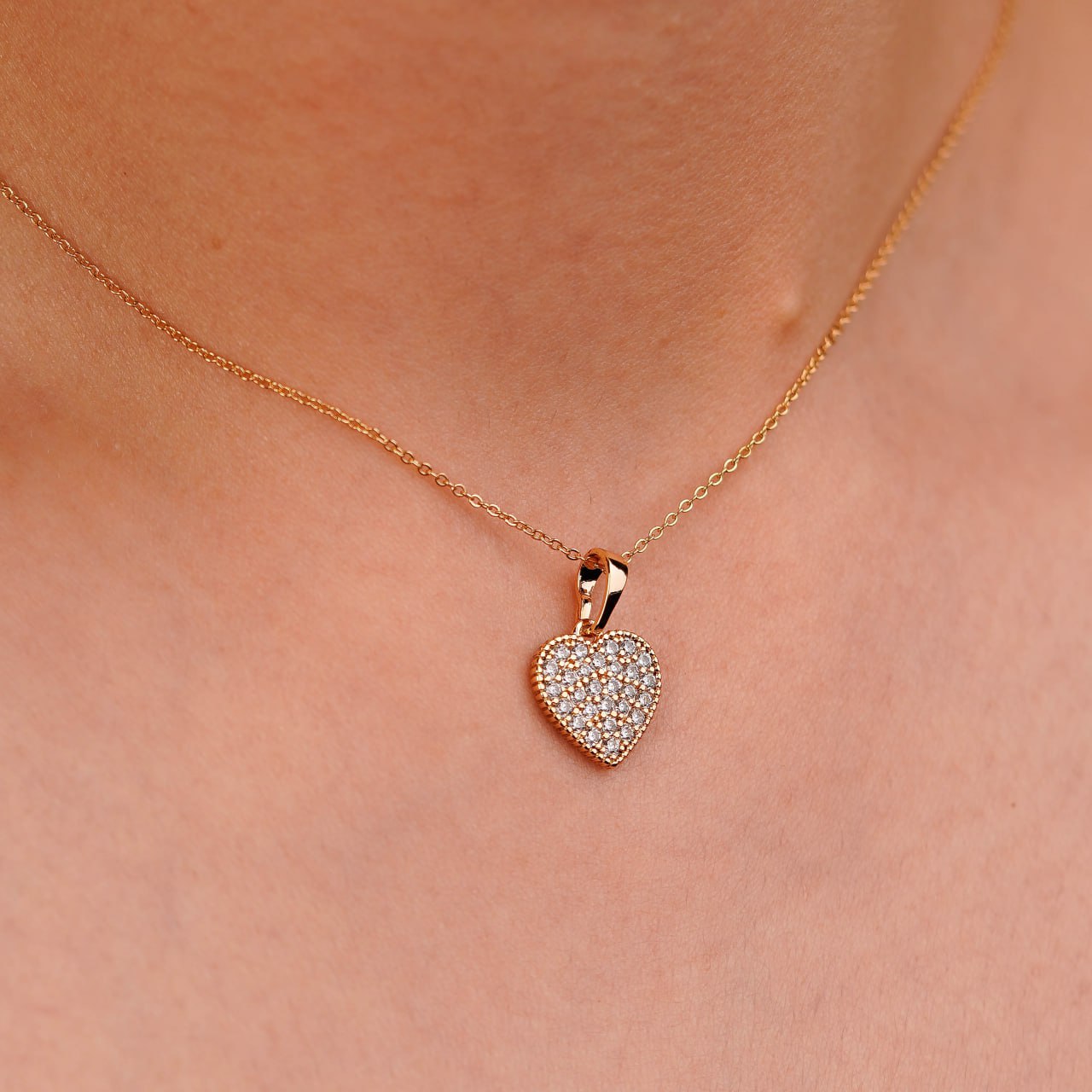 پلاک قلب فول نگین رنگ سفید برند ژوپینگ نگین ها مخراج کاری شده هست