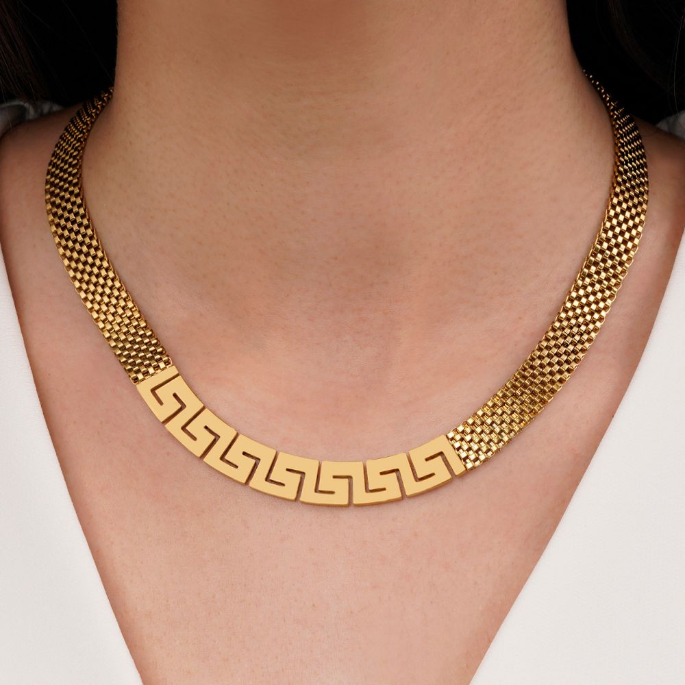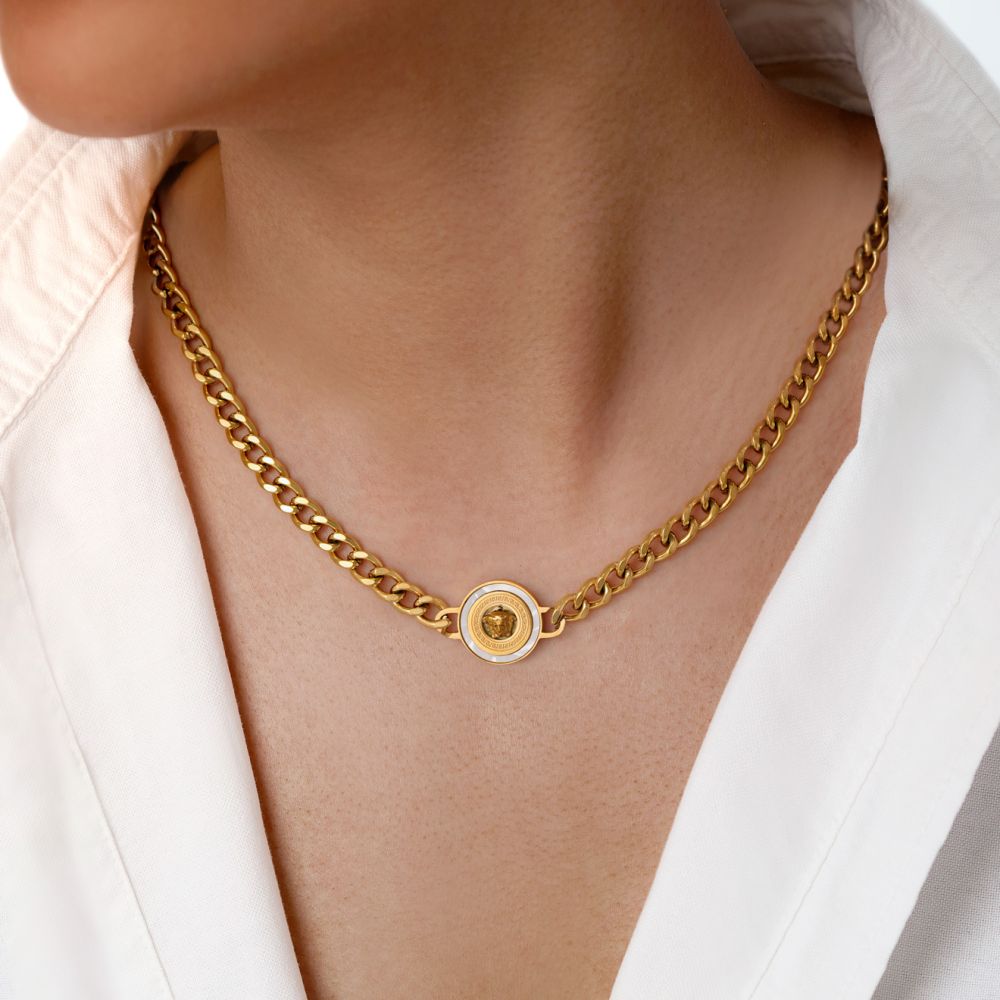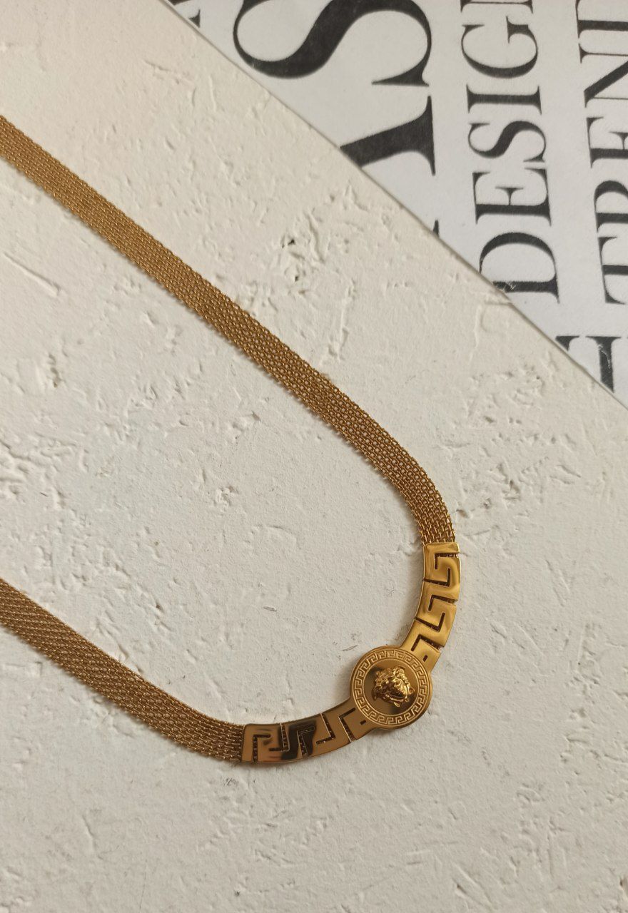 گردنبند استیل ورساچه رنگ طلایی فوق العاده زیبا و خاص کاملا مشابه نمونه طلا اندازه دور گردنبند ۵۰ سانت