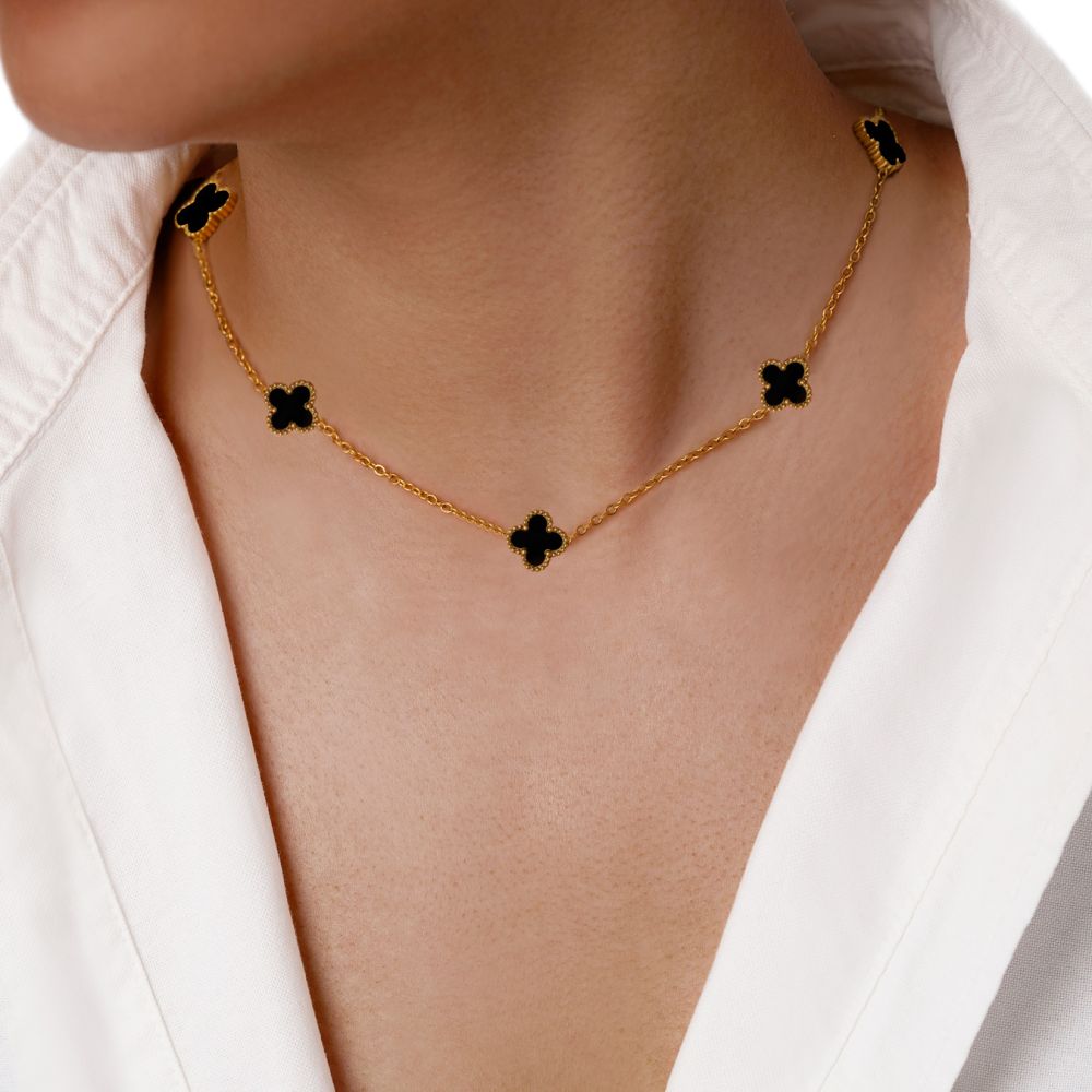 ناموجودگردنبند ونکلیف مشکی چند لاین لویی ویتون استیل طلایی