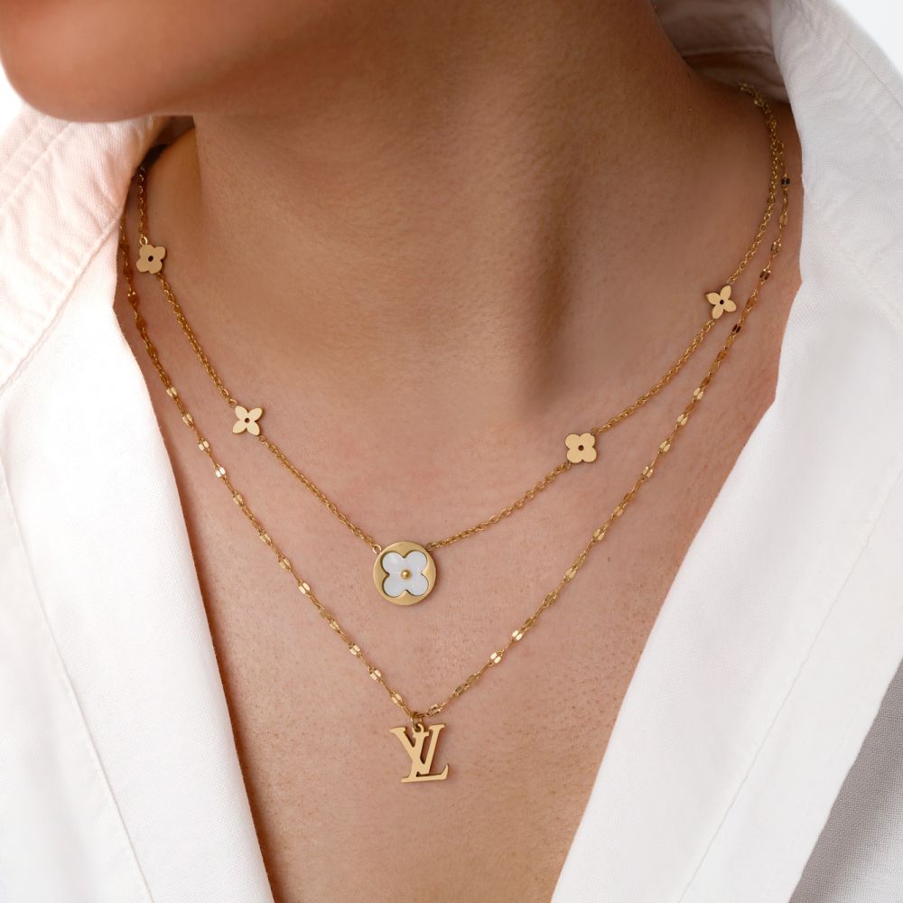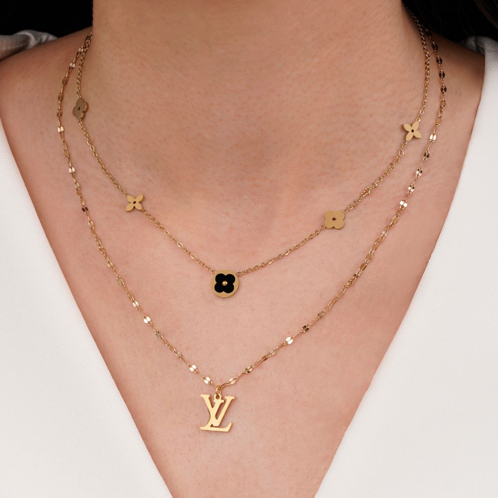 ناموجودگردنبند ونکلیف استیل چند لاین لویی ویتون طلایی
