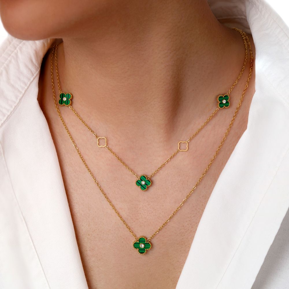 ناموجودگردنبند استیل ونکلیف چند لاین سبز طلایی