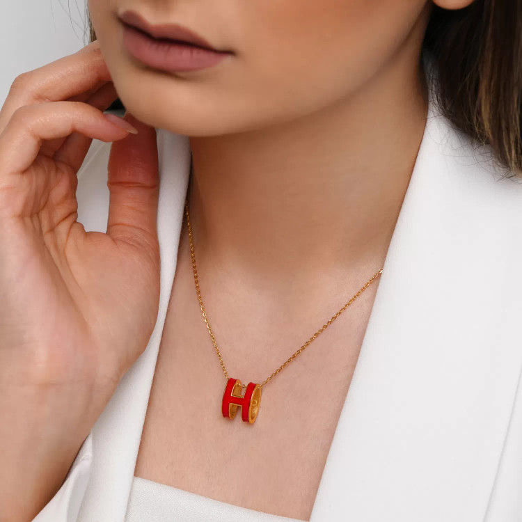 گردنبند هرمس رنگ قرمز برند استیل اندازه زنجیر 45 سانت