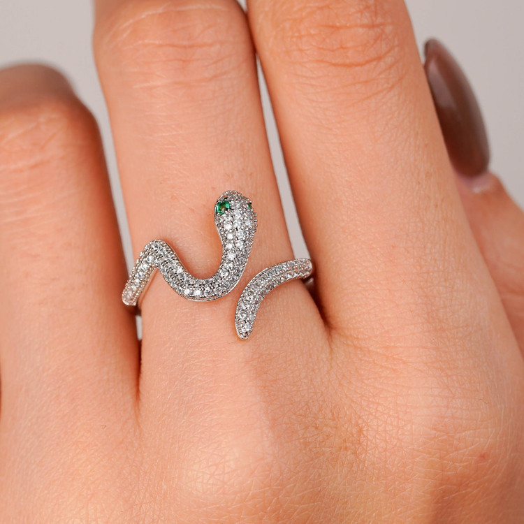 انگشتر ژوپینگ طرح مار فول نگین فری سایز رنگ سفید