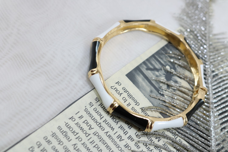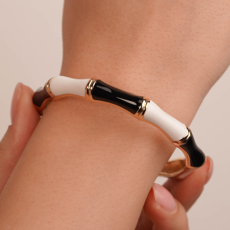 دستبند النگویی میناکاری رنگ سفید مشکی