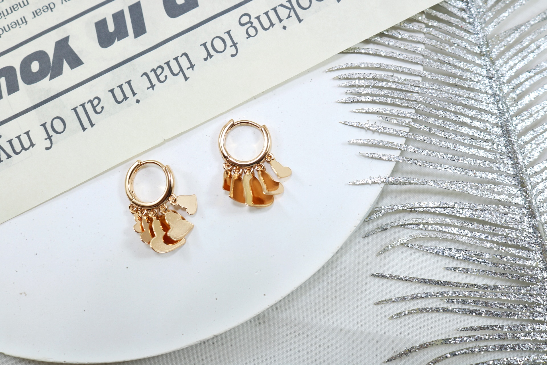گوشواره آویز قلب برند ژوپینگ ضد حساسیت رنگ طلایی