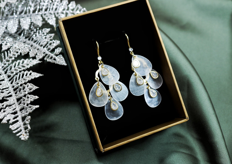 گوشواره پولکی آویز نگین دار رنگ طلایی خاص و زیبا اندازه ۶/۵ سانت