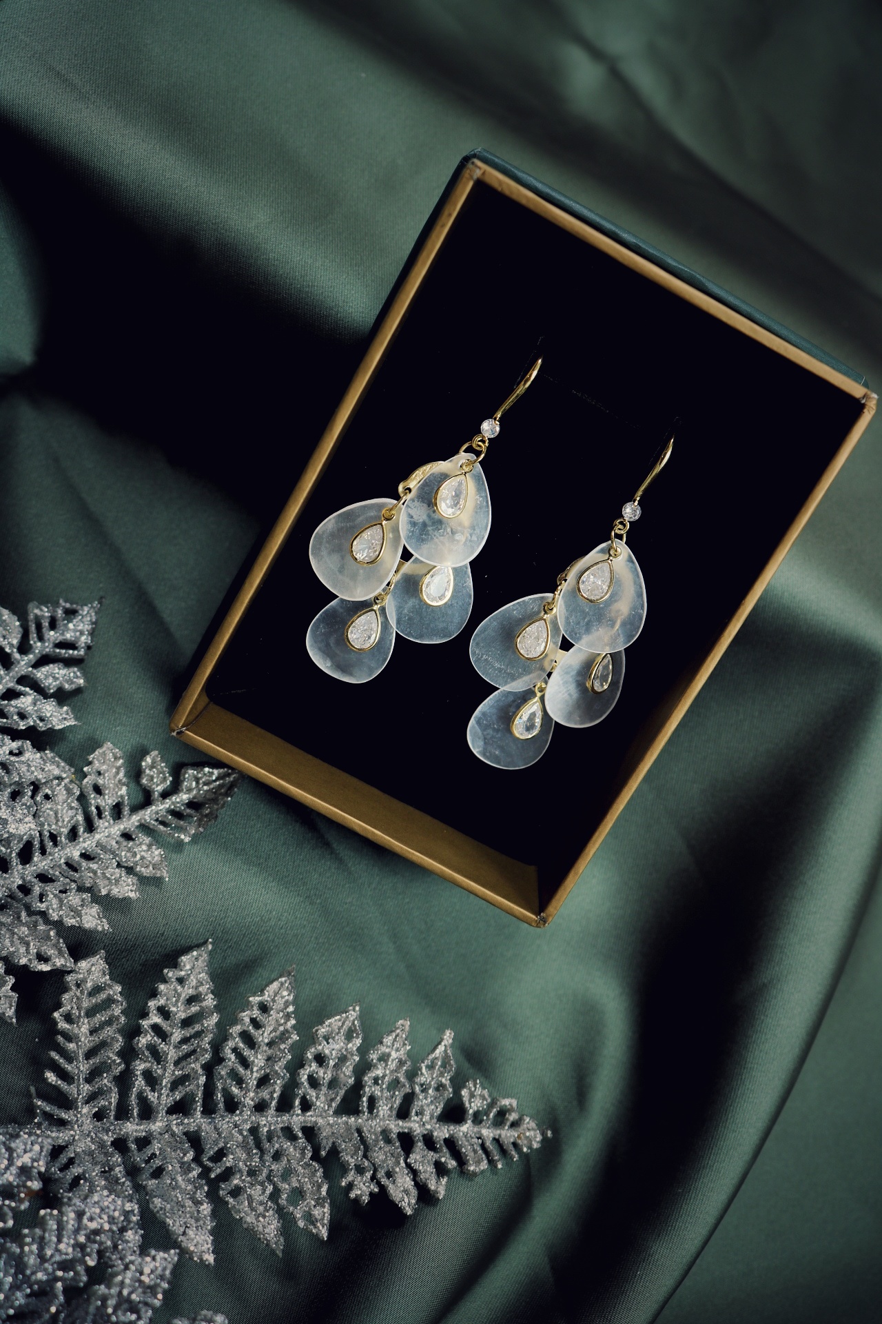 گوشواره پولکی آویز نگین دار رنگ طلایی خاص و زیبا اندازه ۶/۵ سانت