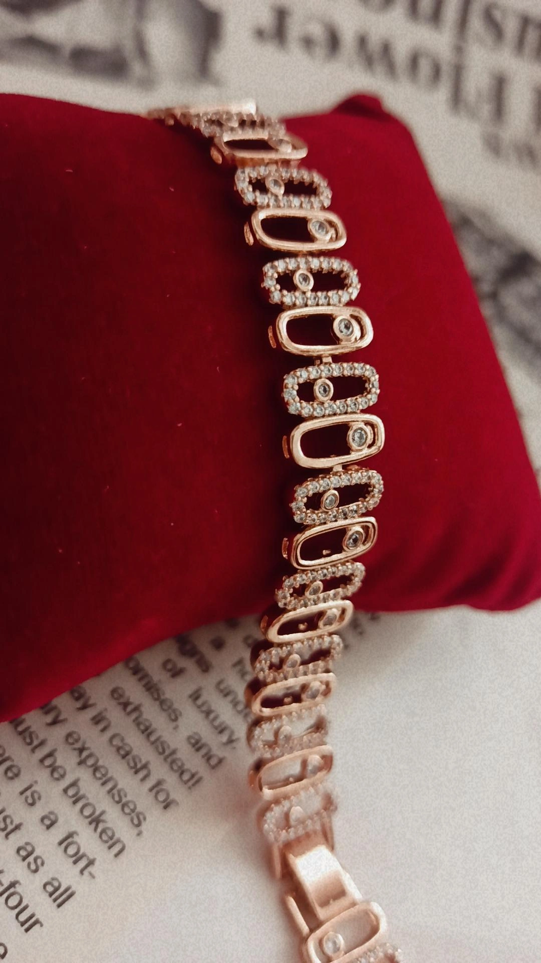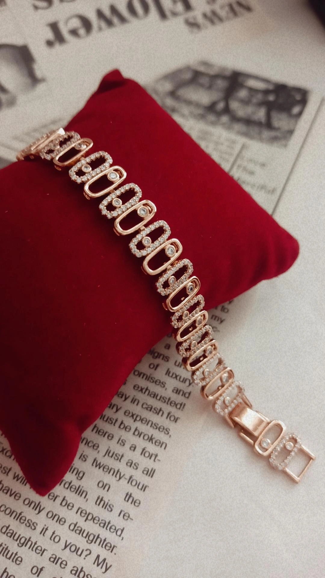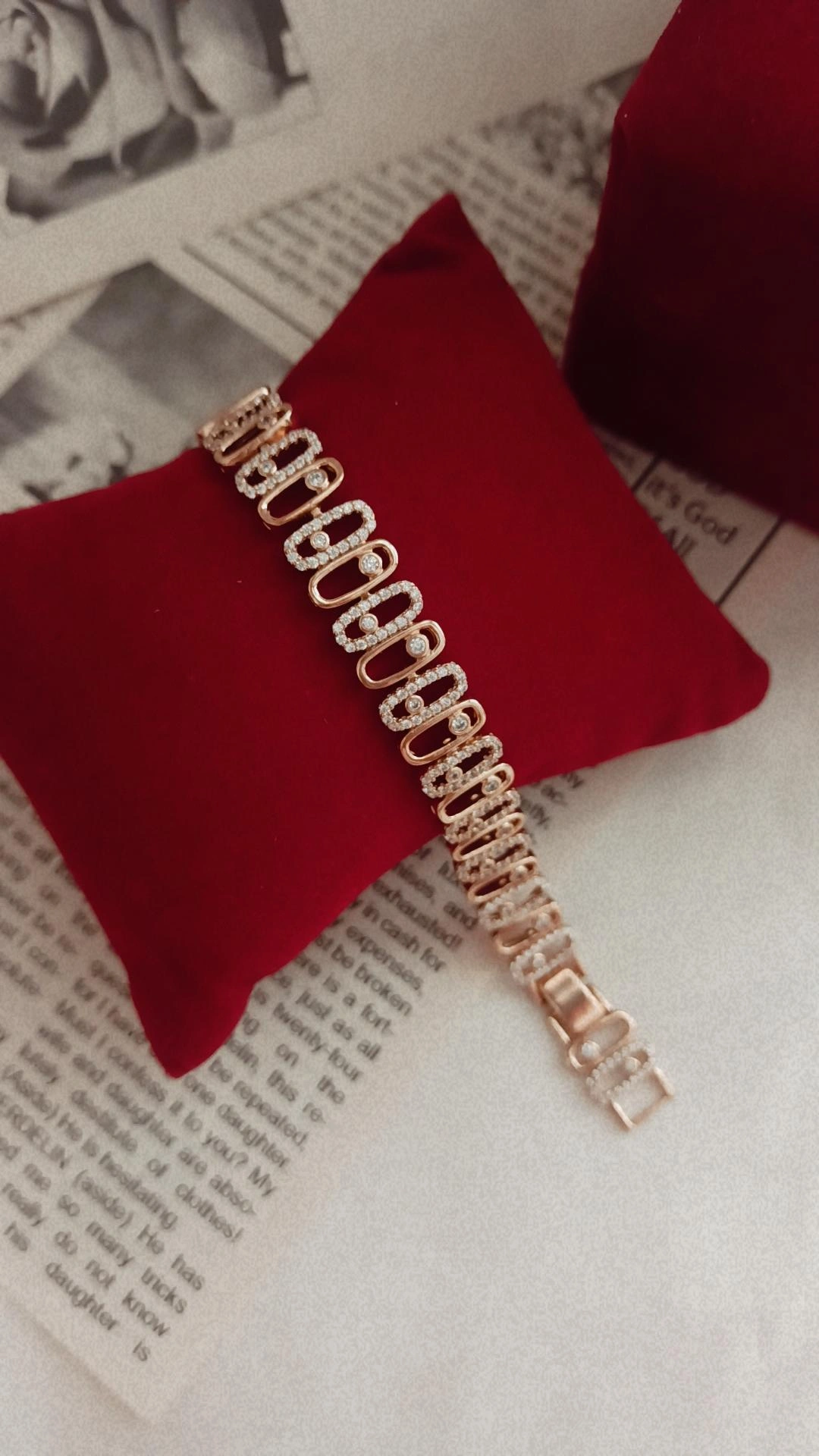 دستبند زنجیری ژوپینگ طرح مسیکا فول نگین مخراج کاری شده رنگ طلایی در اندازه 17/5 تا 19/5 در 10میل