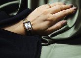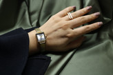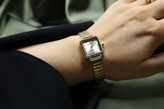 ساعت زنانه بند طلایی نگین دار KOUSHI صفحه مربع رنگ صفحه سفید صدفی بند و بک استیل قفل ریلی کیفیت عالی