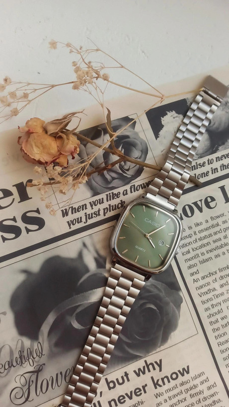 ساعت کاسیو مردانه اولد مانی بند نقره ای صفحه سبز ، اندازه بند ۲۲/۵ سانت قفل ریلی با قابلیت کوتاه کردن راحت