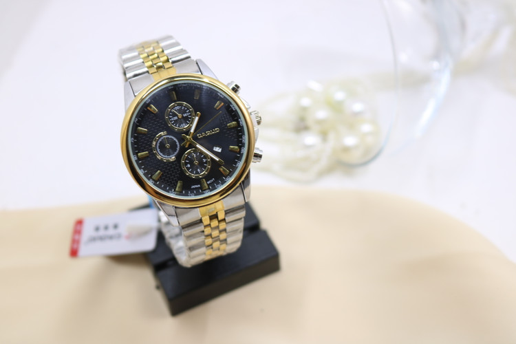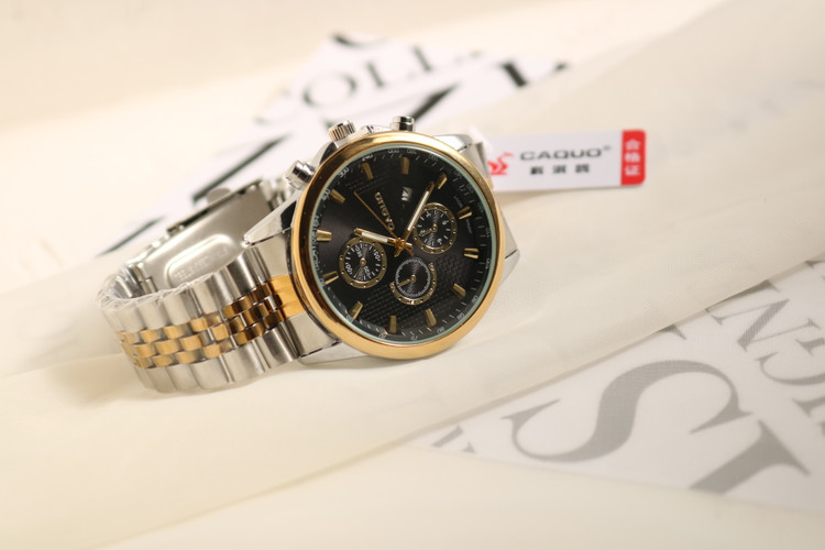 ساعت مردانه صفحه مشکی کاکیو جنس استیل فوق العاده با کیفیت قفل پروانه ای رنگ صفحه مشکی تاریخ شمار ضد آب در حد دست شستن