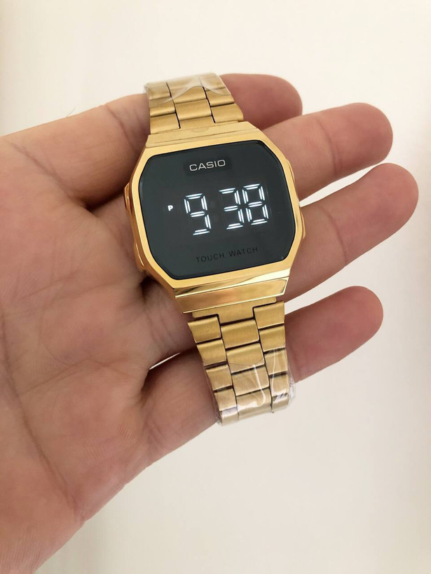 ساعت کاسیو صفحه لمسی مدرن ( اسپورت زنانه و مردانه) رنگ طلایی کیفیت عالی نور سفید قوی ، قفل ریلی ، نمایش ساعت و تاریخ ، رنگ ثابت استیل درجه یک ، سایز نرمال