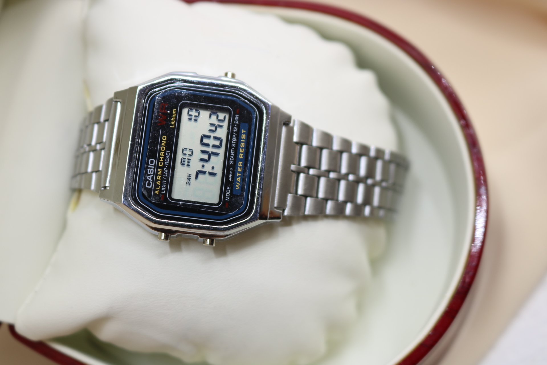 کاسیو نوستالژی مردانه رنگ سفید ، نوستالژی تمام استیل ،ضد آب ، دارای چراغ دید در شب ، آلارم ، کرنومتر ، تاریخ هفته و ماه ، قطر مردانه 34 میل