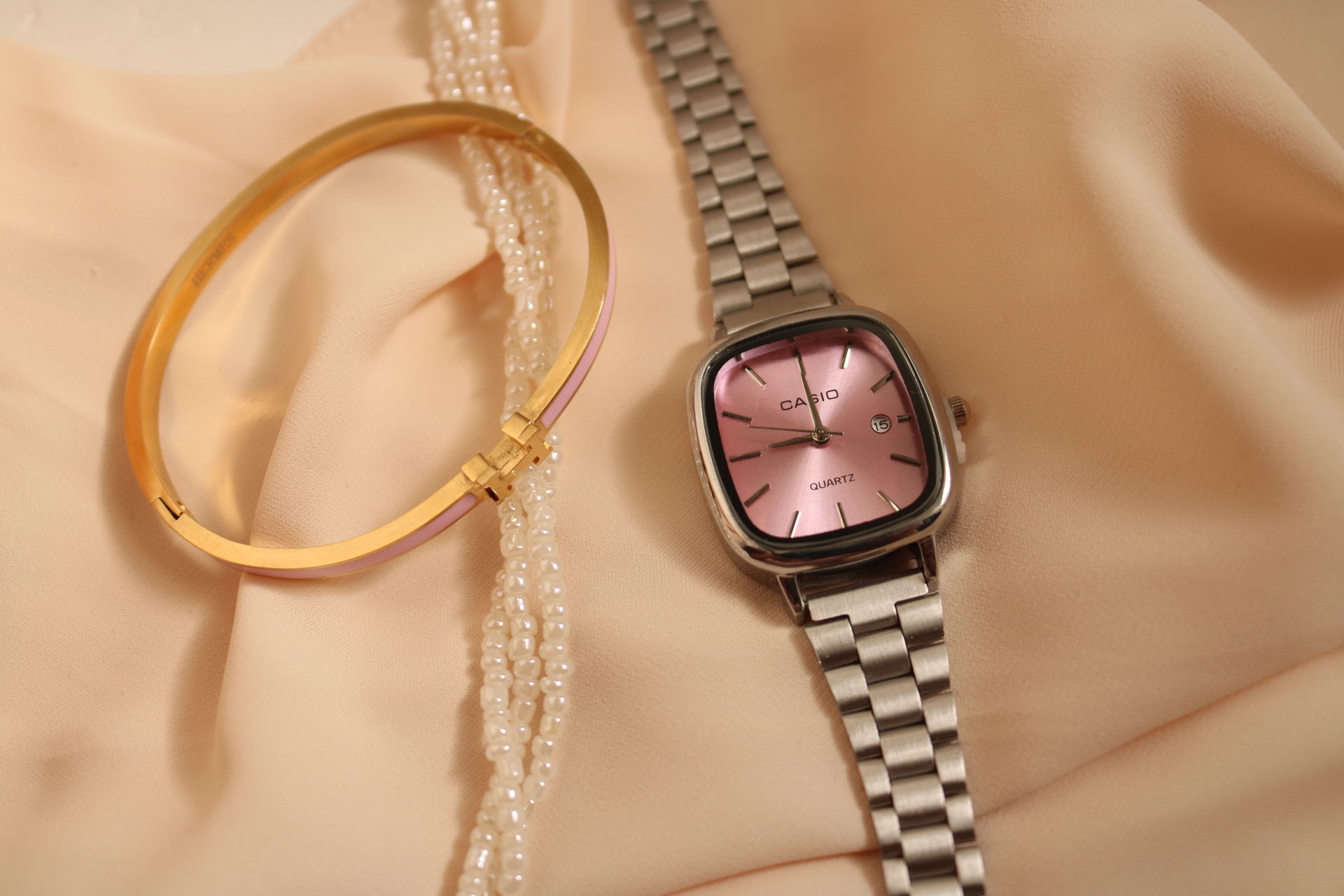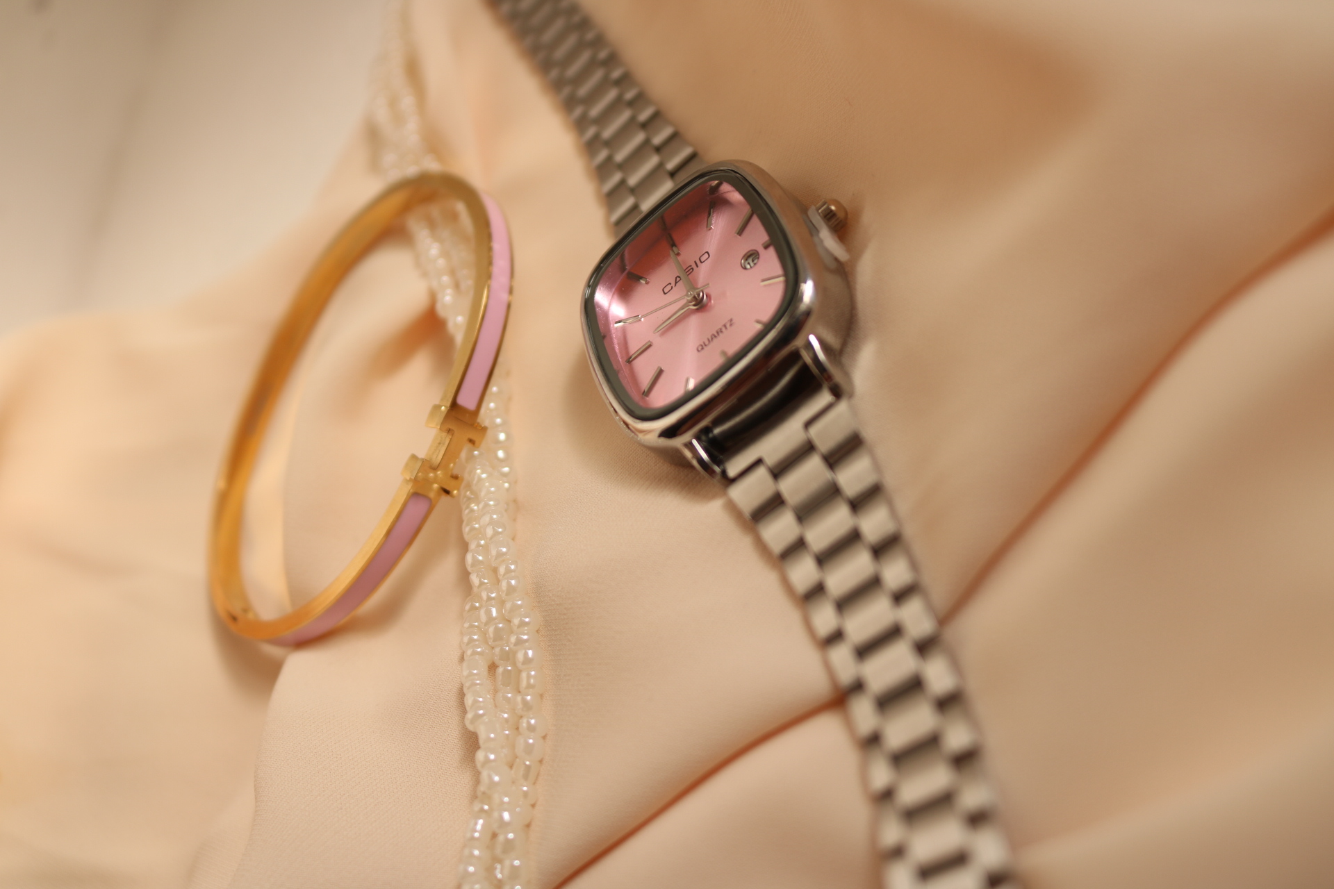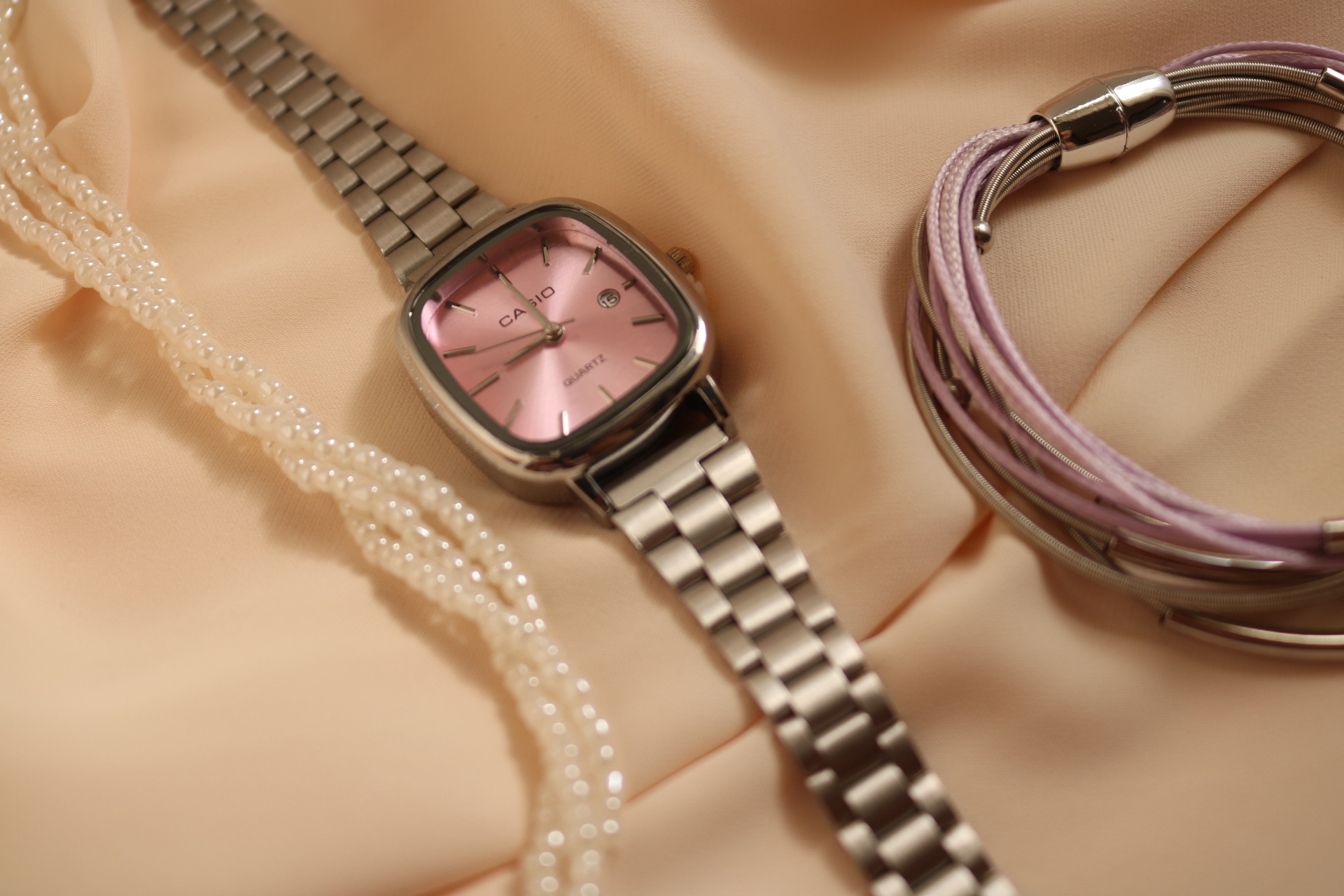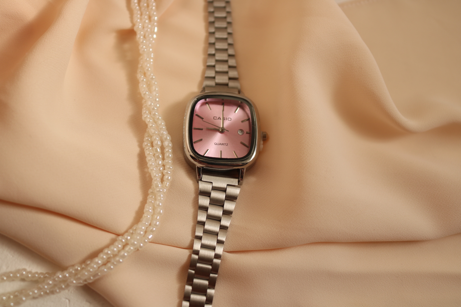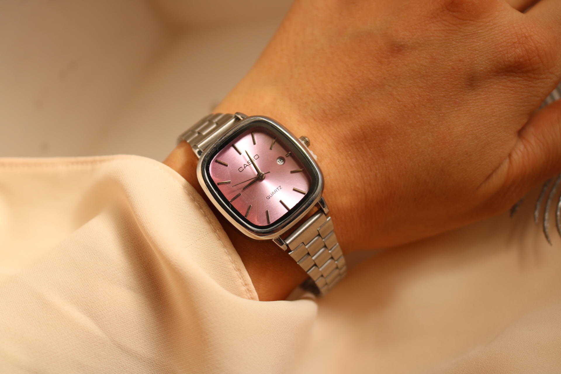 ساعت کاسیو اولدمانی زنانه رنگ صفحه صورتی ملایم ، تمام استیل درجه یک ، حک برند ، قفل ریلی