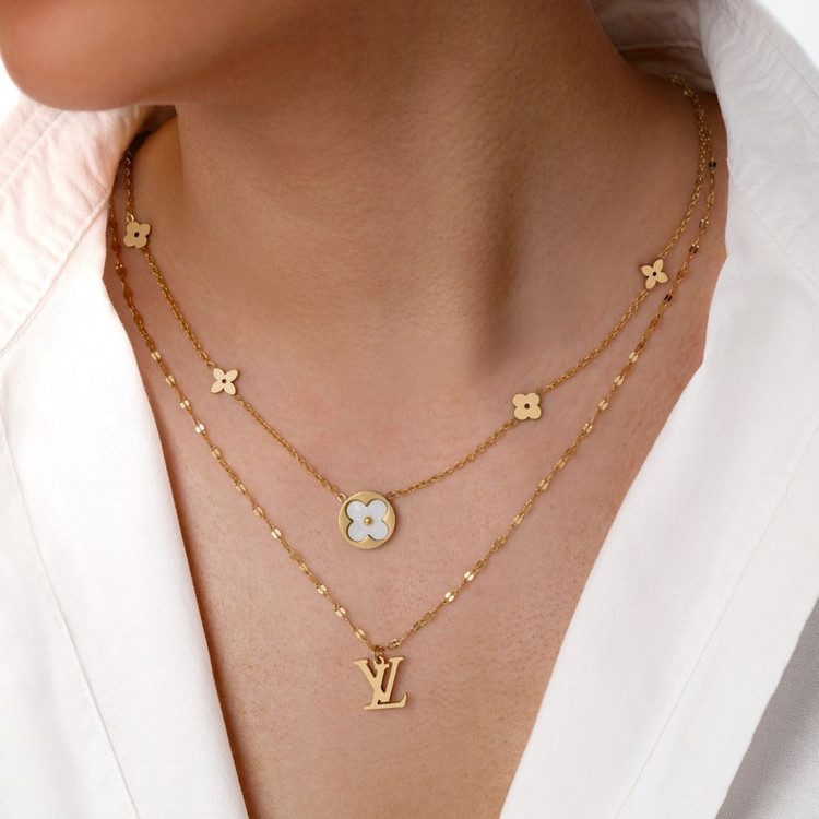 گردنبند ونکلیف استیل چند لاین لویی ویتون طلایی