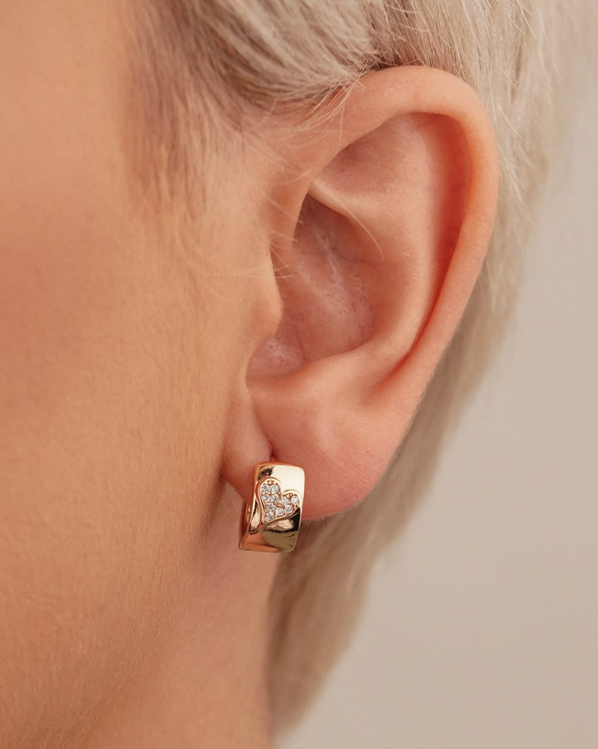 گوشواره حلقه ای نگین قلبی رنگ طلایی