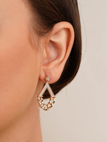 گوشواره میخی نگین دار طرح کارتیه فوق العاده خاص و زیبا رنگ طلایی برند ژوپینگ
