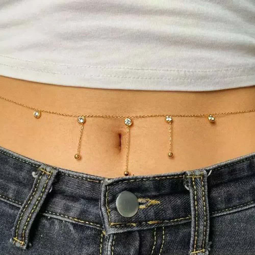 زنجیر دور بدن دو لاین سفید ،زنجیر دور کمر، جنس استیل ، بهترین کیفیت آبکاری طلا