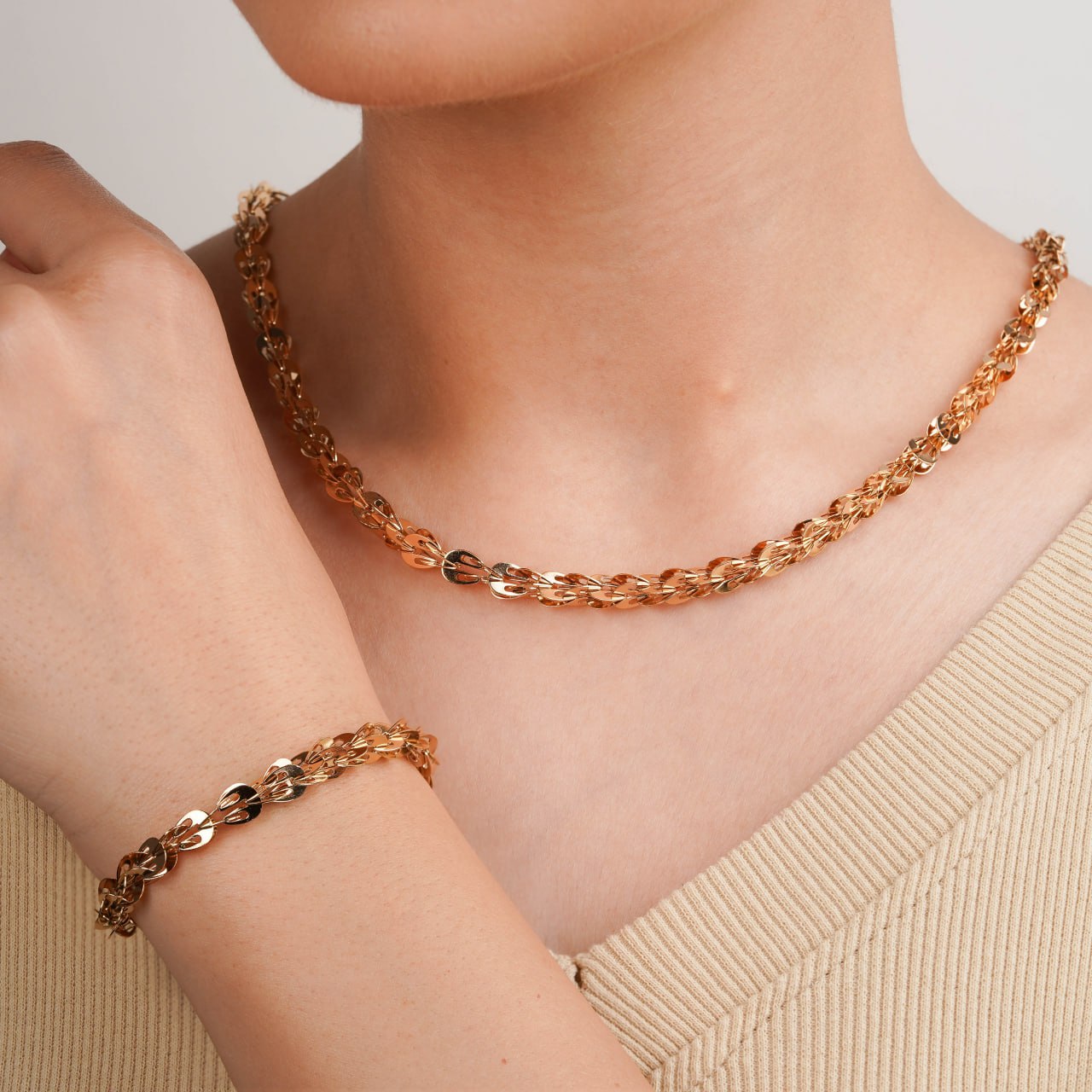 نیمست زیبای ژوپینگ شامل گردنبند و دستبند رنگ طلایی